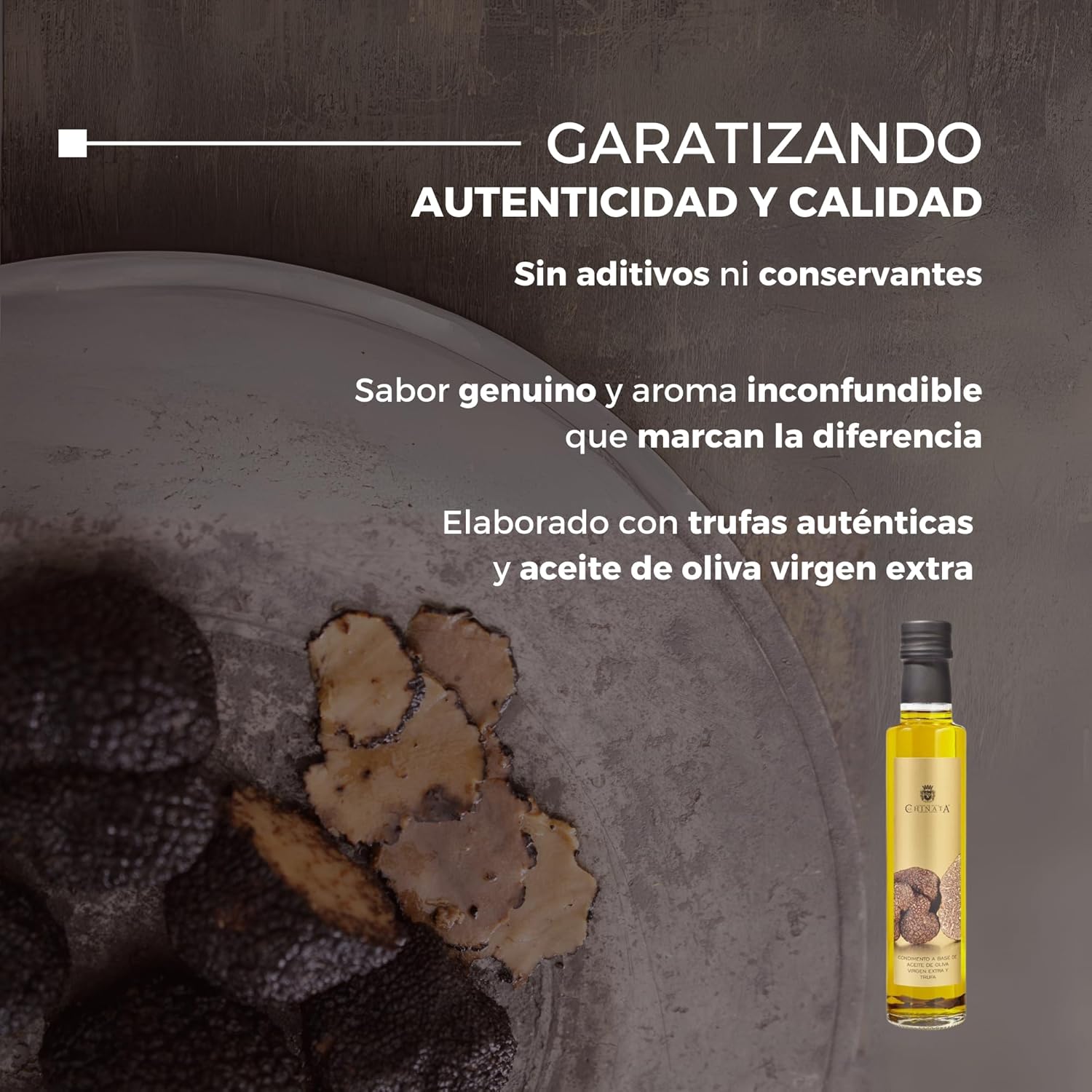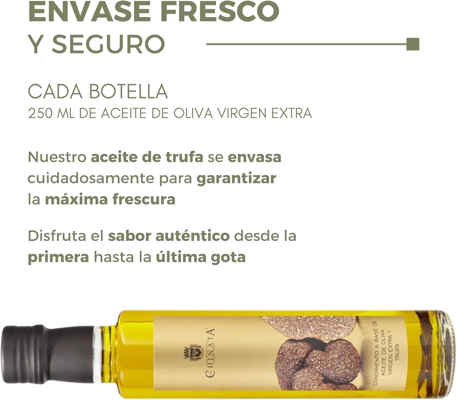 El Condimento de Trufa La Chinata es uno de los más vendidos de la marca y está elaborado con una selección del mejor Aceite de Oliva Virgen Extra y aromatizado con trufa, concretamente de la variedad Tuber Aestivum Vittad.
