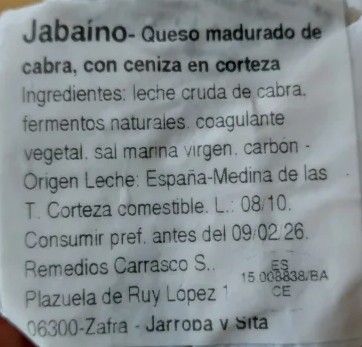 Jabaíno es un queso madurado de cabra, de textura fina y delicada, con una corteza comestible cubierta de ceniza vegetal, que realza sus matices y equilibra su acidez natural. Elaborado con leche cruda de cabra, fermentos naturales y coagulante vegetal, este queso refleja de forma pura el territorio y el saber hacer artesanal de la quesería Jarropa y Sita.