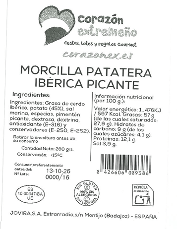 *Este producto se debe enviar refrigerado en frio. Al finalizar la compra seleccione ENVIO REFRIGERADO. Si no lo hace se le enviará en el metodo de envio elegido, pero la empresa (Corazón extremeño) NO se hará responsable de cómo pueda llegar el producto.