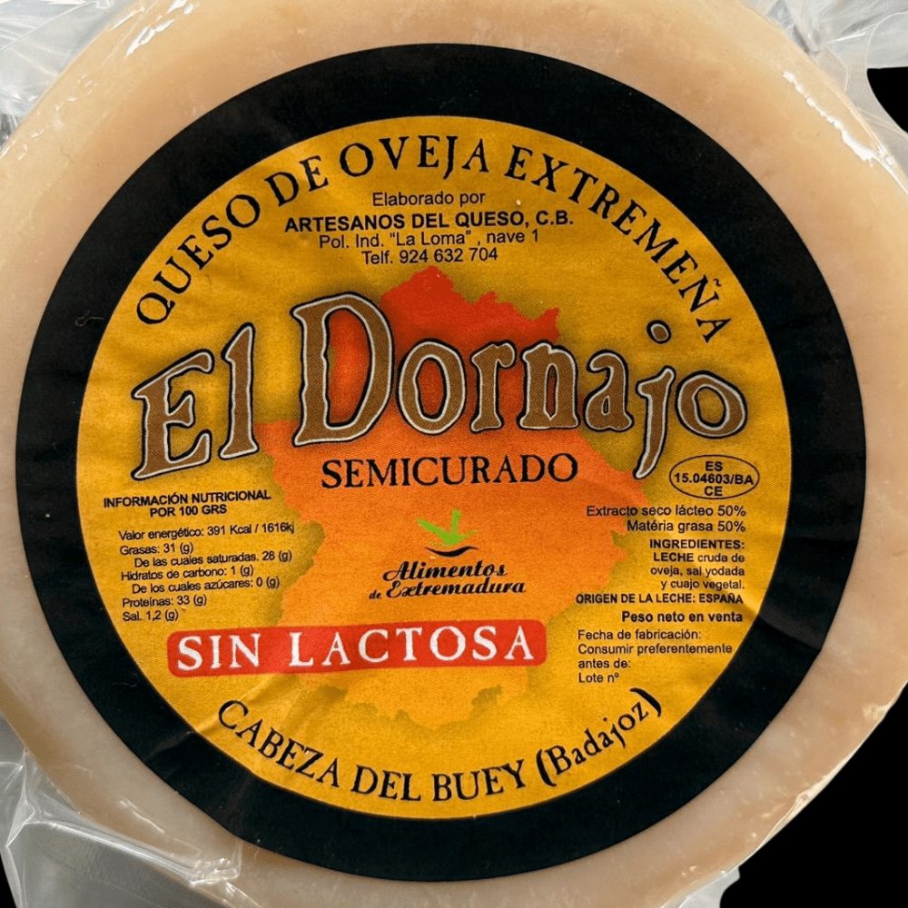El Queso de Oveja Sin Lactosa el dornajo es un queso elaborado en cabeza del buey en la comarca de la serena. Esta elaborado con leche cruda de oveja, cuajo vegetal y un pelin de sal.